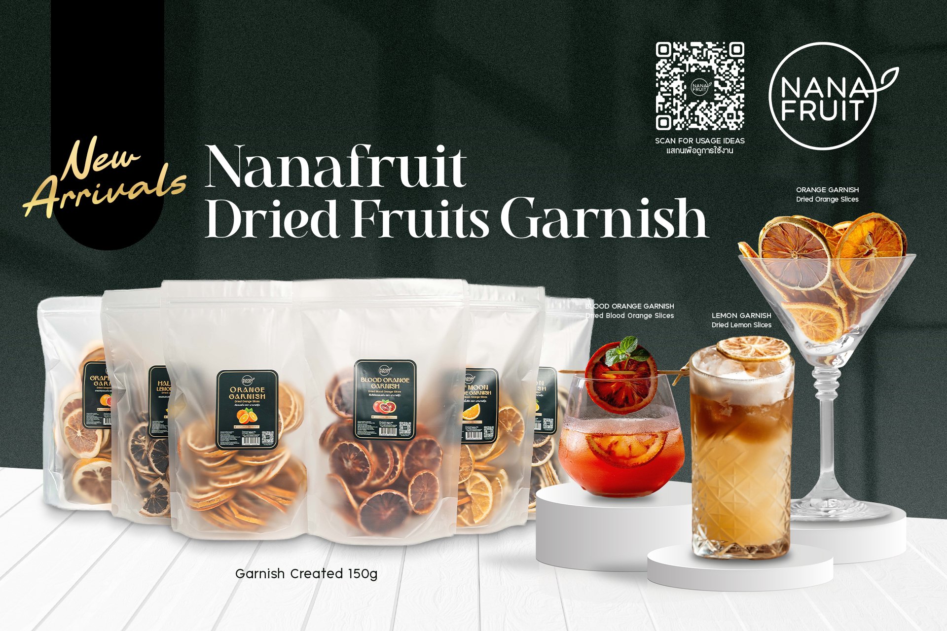 Nanafruit proudly presents our latest collection, Nanafruit Dried Fruit Garnishes a series of six premium dried fruits designed to elevate every drink, cocktail, and dish with refined flavor, captivating aroma, and exquisite visual charm.